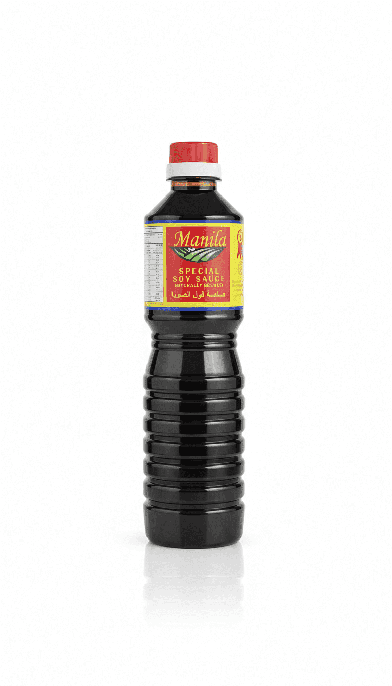 - المكونات: الماء، فول الصويا، القمح، الملح، ولون الكراميل.