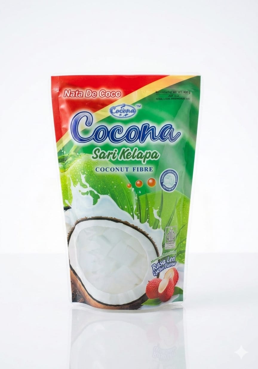 هذا المنتج هو Cocona Nata De Coco (ناتا دي كوكو من ماركة كوكونا)، وهو عبارة عن حلوى جيلي بنكهة جوز الهند والليتشي.
