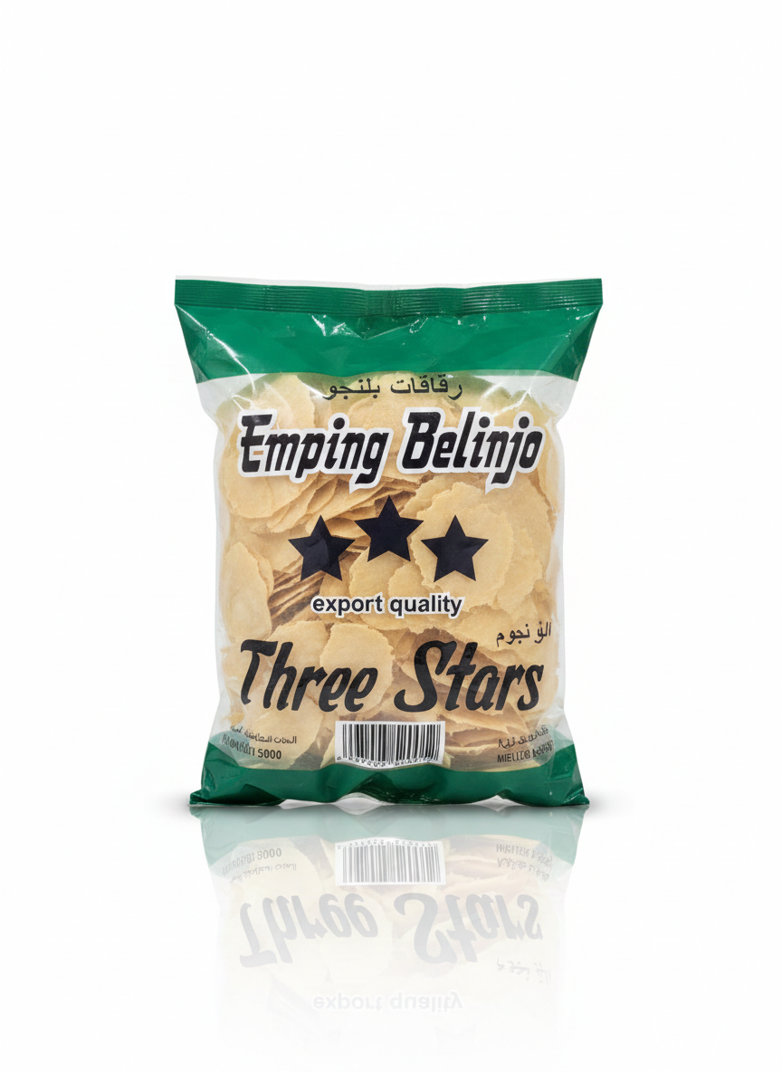هذا المنتج هو رقاقات بلينجو (Emping Belinjo) من علامة “ثري ستارز” (Three Stars).