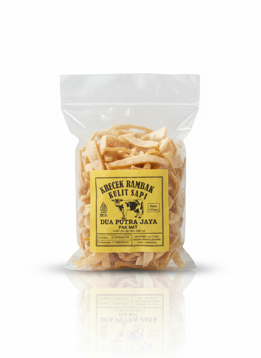 هذا المنتج هو كريك رامباك (Krecek Rambak)، وهو عبارة عن مقرمشات مصنوعة من جلد البقر من إنتاج “دوا بوترا جايا” (Dua Putra Jaya) في إندونيسيا.